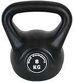 Die Kettlebell besteht aus einer robusten Kunststoff Ummantelung.Für den perfekten Stand der Kugelhantel sorgt eine abgeflachte Unterseite.Kunststoff-ummantelte Kettlebell / Kugelhantel 8 Kg schwarz inkl. deutschsprachiger bebilderter Trainingsanleitung.Kettlebells eignen sich hervorragend für ballistische Kraftübungen.Geeignet für den professionellen Einsatz zu Hause. Neuware vom Händler Geeignet für den professionellen Einsatz zu Hause Kunststoff-ummantelte Kettlebell black / Kugelhantel 8 Kg Inkl. deutschsprachiger bebilderter Trainingsanleitung Im Gegensatz zu vielen anderen Fitnessgeräten bzw. Hanteln sind Kettlebells absolut freie Gewichte. Kettlebells reizen nicht isoliert die Muskeln, sondern die Muskelgruppen im ganzen Körper. Durch das Training mit Kettlebells erhöhen Sie Ihre Ausdauerkraft, Explosivkraft und Koordination. Kettlebells eignen sich hervorragend für ballistische Kraftübungen Vielfältige Übungsvarianten Reißen, Umsetzen, Stoßen, etc. Die Kettlebell besteht aus einer robusten Kunststoff Ummantelung. Als Füllmaterial wurde eine verdichtete Zementmischung verwendet. Für den perfekten Stand der Kugelhantel sorgt eine abgeflachte Unterseite. Modernes u. ansprechendes Design mit eingeprägter KG-Anzeige und Bad Company Logo Abmessungen: Kettlebell / Kugelhantel 255mm hoch / 220mm breit / 175mm tief (ca. Zentimeter Angaben) Der Durchmesser des Griffbügels beträgt 37mm Farbe: schwarz Schriftfarbe: weiß Im Lieferumfang enthalten: 1 x Kunststoff Kettlebell / Kugelhantel 8 Kg inkl. Trainingsanleitung / Übungsanleitung Kundeninformation: Hinweis Das Training mit Kettlebells ist nicht ganz ungefährlich. Durch die dynamischen Trainingsabläufe, treten beim Schwingen der Kugelhantel enorme Kräfte auf.